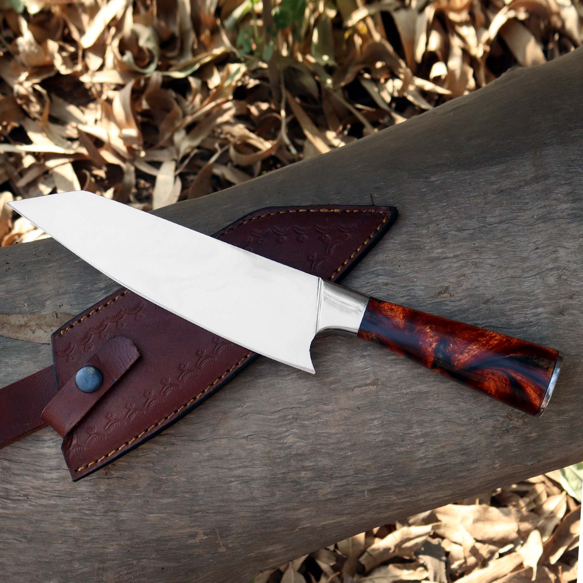 Handmade Chef Knife with Razor Sharp Stainless Steel Blade – Full Tang Kitchen Knife with Resin Handle & Leather Sheath