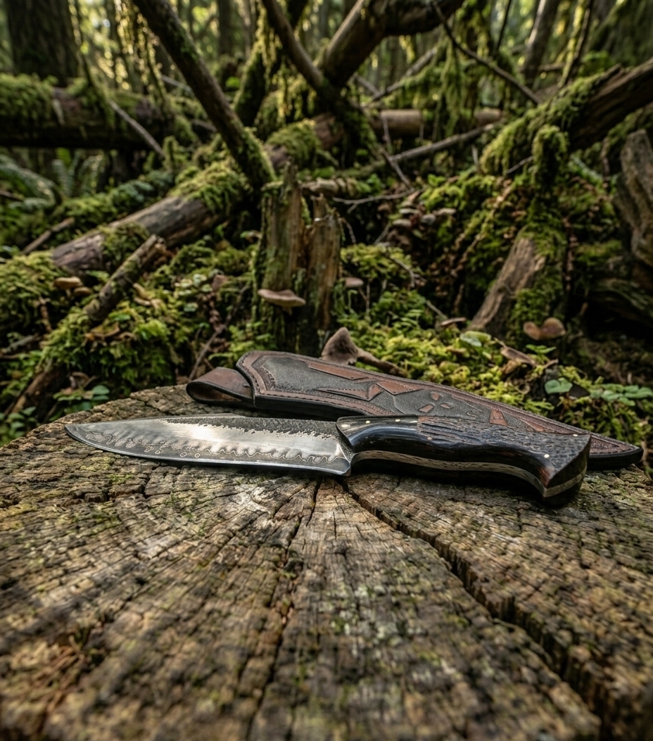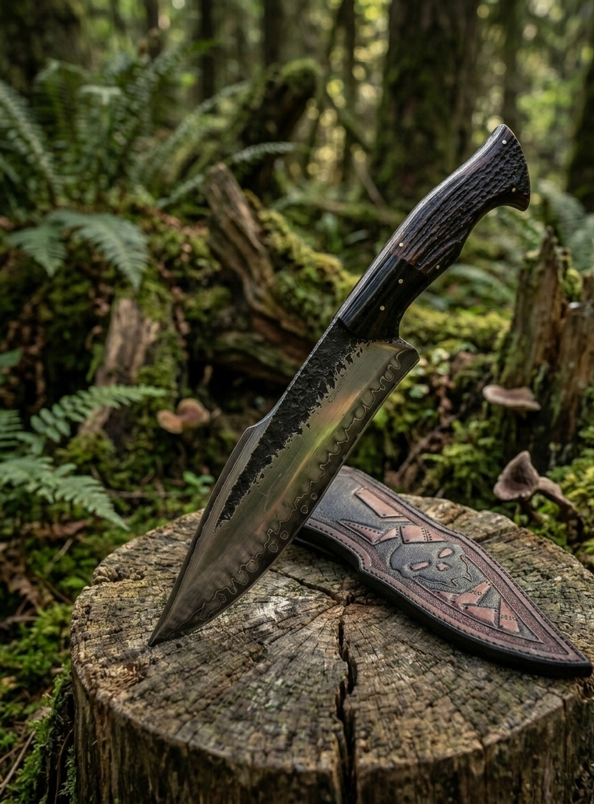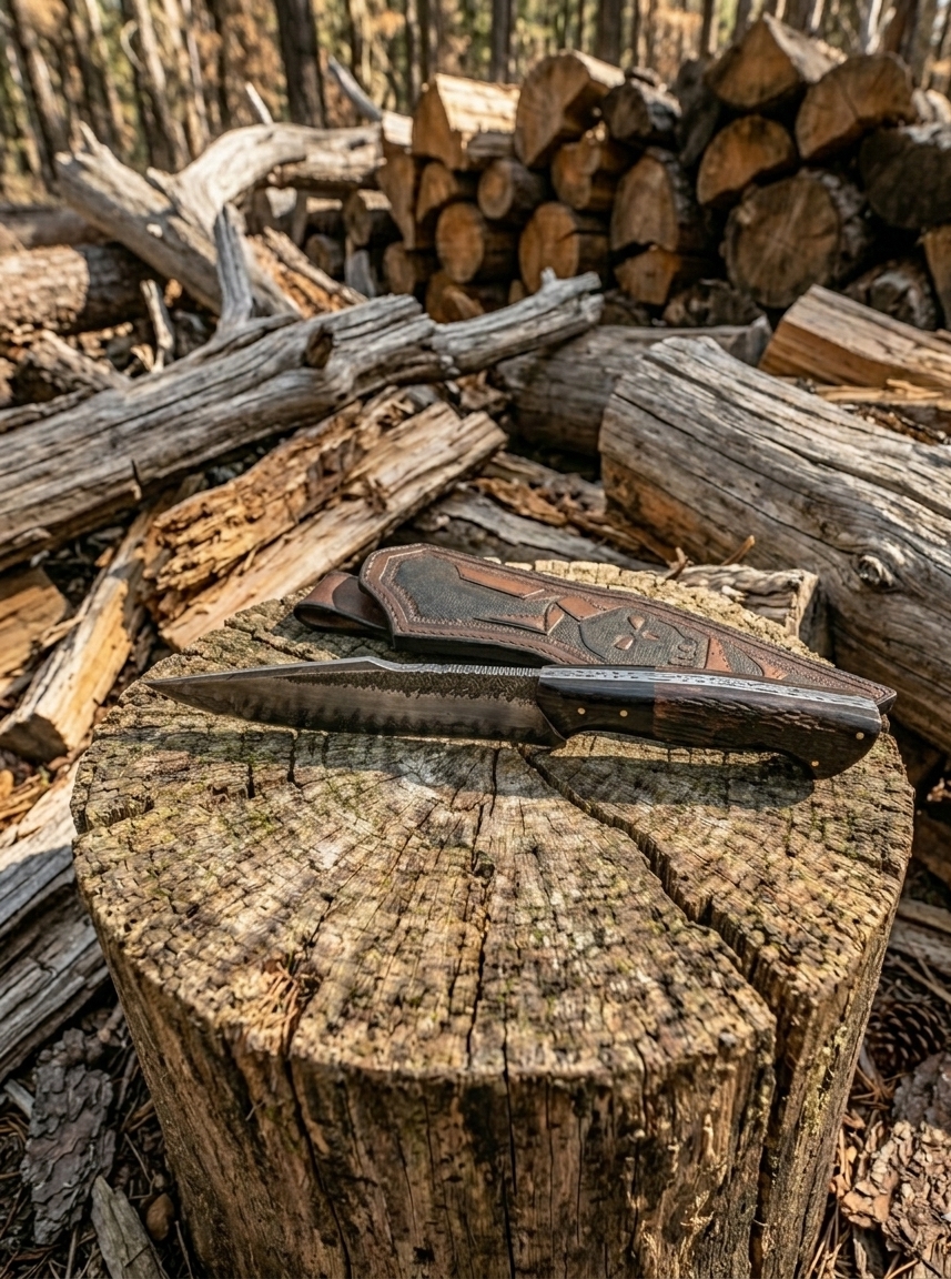 Handmade Damascus Steel Knife – Custom Hunting Knife with Leather Sheath